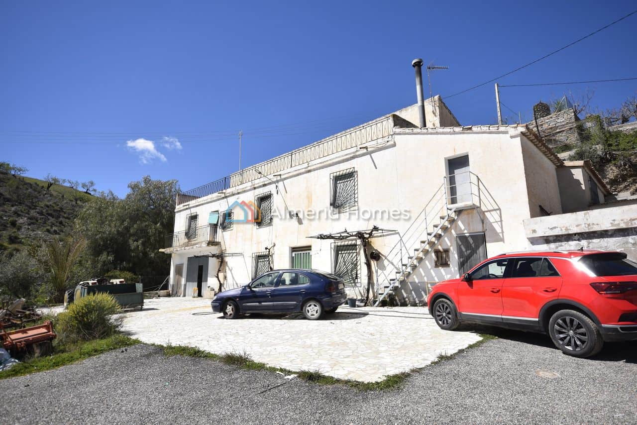 This expansive detached country house offers over 500 m² of built space, set on a generous approx. 1,872 m² plot in a peaceful rural setting. With its size, layout, and potential, the property is ideal for those looking to create a rural B&B or a spacious family home. The plot is partly fenced and gated, with ample parking, a garden area, and a large terrace paved with natural local marble. The land in front of the house slopes down to a vegetable-growing area, which could be transformed with an infinity-style pool, taking advantage of the natural difference in levels. The house has three separate entrances, making it easy to divide into different sections. Upon entering the main entrance, you step into a cosy living room with a wood burner, leading into a large modern kitchen. Off the kitchen is a huge garage with an open fire, offering potential to be converted into a self-contained apartment. Back in the lounge, a door leads to a spacious area that once operated as a bar-restaurant. This space could serve as additional living space or a breakfast area for guests. Off this room, there is a small bedroom and a bathroom. A hallway from the bar area leads to a large dining room on one side and a double bedroom and shower room on the other. The hall then connects to a second garage, which in turn leads to another kitchen and a bedroom with an en-suite shower room. A staircase from the ground-floor garage leads up to the first floor, where there are seven bedrooms, a bathroom, a utility room, and two large unfinished rooms—both offering excellent potential for self-contained apartments. One of the rooms has access to an exterior staircase, further enhancing its possibilities. There is also a balcony on this floor. The second floor features two additional rooms and access to a vast roof terrace with stunning views over the surrounding countryside. The property benefits from mains electricity, while water is supplied via irrigation water from a well into a large water deposit. Access is via tarmac road, with the final 1.2 km being along a rambla (dry riverbed). Situated within a 5-minute drive (3.3 km) from a bar-restaurant and petrol station, 7-minute drive (4.4 km) to a small supermarket, 8-minute drive (4.9 km) to the historic Saliente Monastery, 8-minute drive (5.1 km) to the village of Las Pocicas, and a 20-minute drive (15.9 km) from Albox town for full amenities. With its vast space, adaptable layout, and stunning surroundings, this property offers a fantastic opportunity for a rural business venture or a unique countryside retreat.
