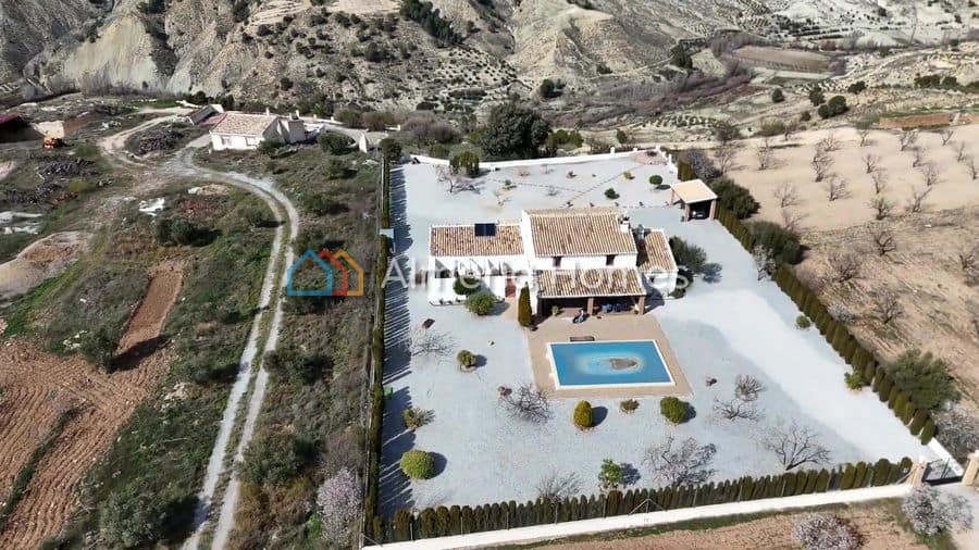 Set in the heart of the Castril Valley, this beautifully restored two-bedroom, three-bathroom villa offers the ideal blend of rustic character and modern comfort – a perfect countryside retreat in one of Spain’s most naturally stunning regions. Positioned on a fully fenced approx. 2,419m² plot and accessed via a well-maintained dirt road just 3km from the tarmac, the property enjoys complete privacy while remaining within easy reach of local amenities. The setting is peaceful and scenic, surrounded by panoramic mountain views and the unspoiled nature of Granada’s rural landscape. The villa is introduced through wrought iron gates into a low-maintenance gravelled garden, thoughtfully planted with roses, fruit trees, and mature shrubs. A covered carport provides shelter for your vehicle, and the south-east facing 8x4m pool catches sunlight throughout the day. Just beside, there’s an outdoor shower and a charming walled courtyard with a raised herb garden, ideal for cooking outdoors and enjoying the quiet surroundings. A private mirador tucked into the back garden offers a peaceful spot to take in sunsets or the night sky. The covered front terrace (28m²) is the hub of outdoor living, with a built-in BBQ, running water, and space to relax or entertain while enjoying uninterrupted views across the valley. Innen, the cortijo has been renovated with care and respect for its traditional style. The open-plan living and dining room is welcoming and bright, with a fireplace for cooler evenings. Off to the side is a snug or office, which could be used as a third bedroom and still features the original bread oven. The kitchen is fully fitted with bespoke wooden units, marble worktops, a central island, and quality appliances—blending practicality with warm rustic design. A versatile ‘Yoga Room’ with its own private rear terrace offers further potential, whether for personal use or as guest accommodation. This space connects via a hallway to a full bathroom and laundry room, making it ideal for visitors or even rental use. Upstairs are two large en-suite bedrooms, each with generous dressing areas and modern bathrooms with walk-in showers and electric towel rails. Both rooms share access to a balcony with breathtaking valley views—perfect for morning coffee in the fresh air. The property was fully renovated between 2019 Und 2022 and is fitted with modern comforts throughout, including double-glazed aluminium windows with mosquito screens and shutters, USB ports in all rooms, Klimaanlage (hot and cold) in all bedrooms and the Yoga Room, and tiled floors. The original wooden doors and exposed ceiling beams have been preserved, giving the home its authentic charm. Utilities include mains electricity, water, and sewage, an internet connection, a solar and gas hot water system, and a house alarm. The sale includes white goods and partial furnishings. Just 10–15 minutes from Castril village, the home is close to everyday services and the stunning Castril Natural Park, known for its walking trails, wildlife, and the picturesque village centre. Travel links include Granada Airport (1.5 Std.), and Murcia, Malaga, and the Almeria coastline are all within a 2.5–3 hour drive. Whether you’re looking for a permanent home, peaceful holiday getaway, or a potential rental property, this cortijo is a rare find in a truly special part of rural Andalusia.