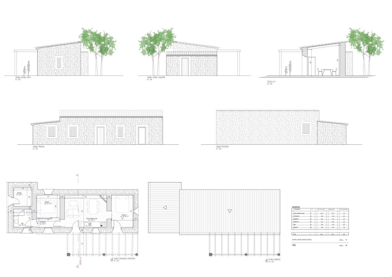 A small finca for sale in Búger Mallorca. This small rural finca is located on the outer edge of the village of Búger in Mallorca on a plot of 3986m2, the property which is registered from 1956 has a footprint of 77m2 which is registered as a living space. There is a proposal for a project to reform the house into either a one or a two bedroom, with one bathroom property with a kitchen diner and a lounge. With pergola across the front of the house to offer shade and somewhere to dine in the evenings and a small storage room to the rear of the house. Because the property is on a small plot of just under 4000m2 only the existing building can be very reformed and no further extensions or amplifications can be made to the building. Ideally suited to those looking for a small weekend retreat in the countryside, close to a quiet village close to a quiet and traditional village. Justo 30 minutes’ drive from the airport in Palma de Mallorca, y menos de 20 minutes from the ports and beaches of the bay of Alcudia.