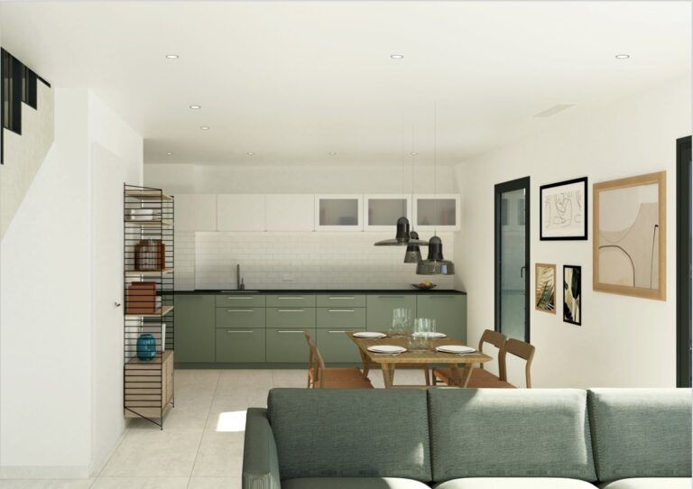 Contemporary style townhouse in Gran Alacant. The property has 114m2 plot and is built over 2 pisos. On ground floor we will find a spacious dining-living room, american style kitchen and 1 baño. On the first floor you will find 3bedrooms, 1 bathroom and terrace of 7m2. Also has parking place inside the plot