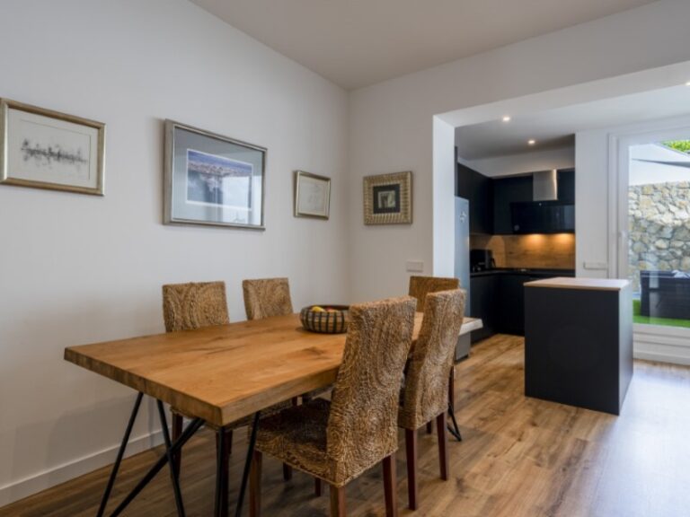 Upstairs are two charming bedrooms, each equipped with its own en-suite bathroom. One of the bedrooms has access to an open terrace, which invites you to relax.