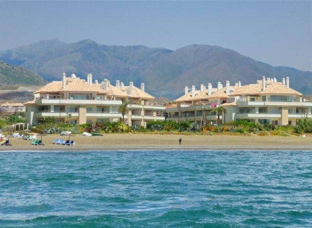 This luxury duplex penthouse is located right on the beach between Estepona and San Pedro. The luxury complex has 24 hour security and underground parking with direct elevator access to the apartment. Le 20 meter community pool is heated, which is great as this area benefits from many sunny days, even in winter and from the community garden you have direct access to the lovely beach. There is a fully equipped Gym with several aerobic and other machines, as well as Table Tennis and Sauna. The penthouse has an extremely large terrace (132M2) with amazing views to the sea. Glass curtains surrounding most of the terrace gives protection so you can enjoy living “outdoors” all year round. The terrace also has a 6-seater whirlpool and outside shower. There is an area prepared for a barbecue and cooking area. All bedrooms are very spacious and have en-suite bathrooms. The upstairs bedroom has a walk-in wardrobe and access to 3 private terraces. The large and friendly kitchen is fitted with Siemens appliances and has access to the main terrace and a private 12m2 side terrace. One of the main bedrooms downstairs also has a walk-in wardrobe and en-suite luxury bathroom with Jacuzzi and walk-in shower. If you are looking for pure luxury, you will find it here. Penthouse for sale in Guadalmansa Playa – Estepona – Costa del Sol – Andalusia – Espagne