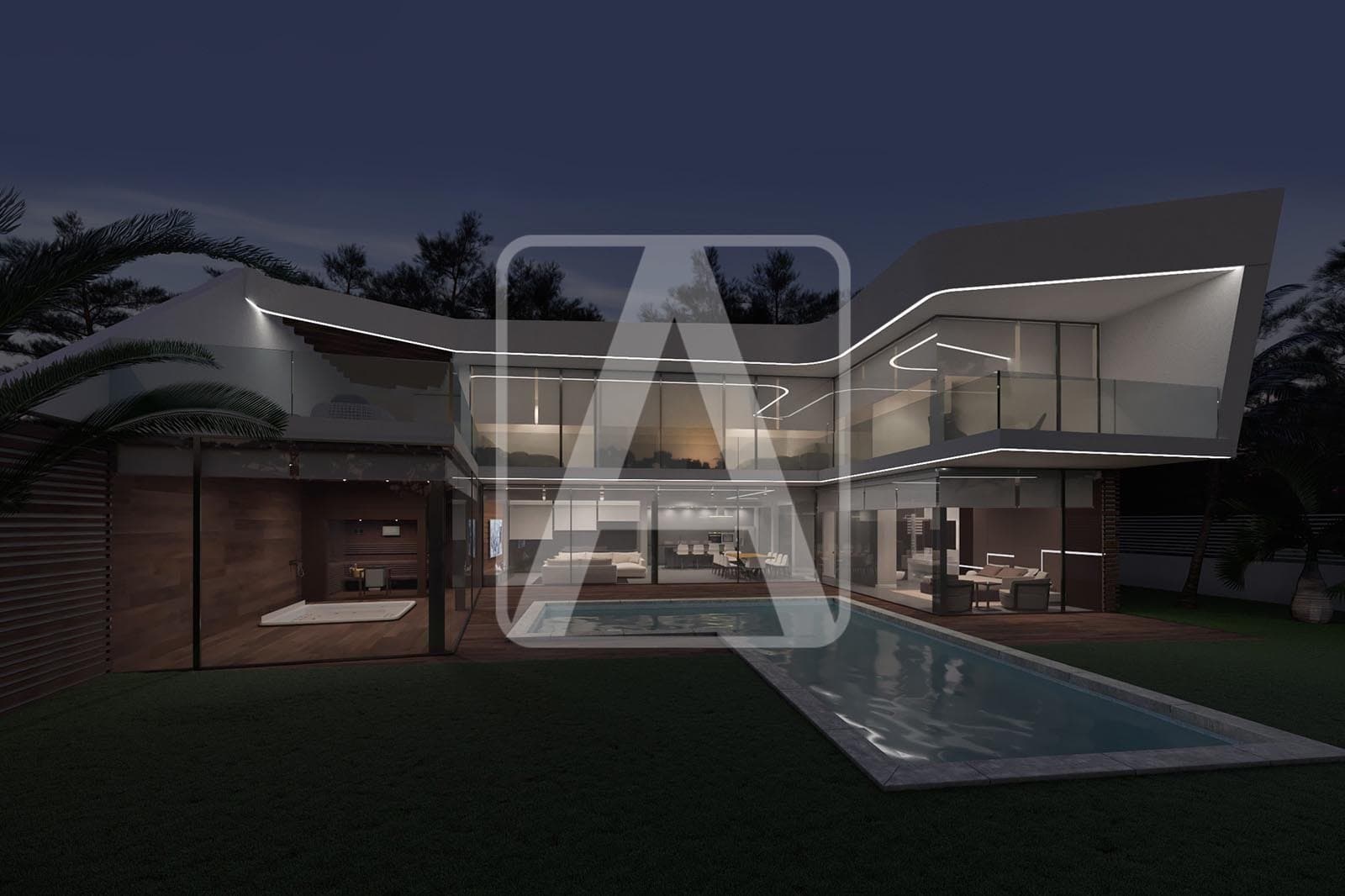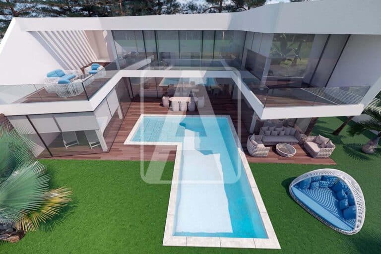 Modern villa project for sale in Altea, in urbanization Campomanes. It is located just 1,5 Km from the Campomanes Yacht Club and 1 Km from Mascarat Beach, very close to services. Enjoys sun all day, (South orientation), et 100% confidentialité. It is located on a plot of 1.046 m2 and has a total constructed area of 298 m2 distributed over 2 floors as follows: on the main floor we have the large open plan living room kitchen, (fabulous, all open + island), 1 guest toilet, laundry room, 1 large bedroom with en suite bathroom and dressing room and an incredibly ample leisure area, (SPA, relax…), with sauna, jacuzzi,… On the upper floor we have 3 large bedrooms, all of them with en suite bathrooms and large fitted wardrobes, and large private terraces, (partially covered). This villa enjoys a large outdoor terrace where we have a beautiful rectangular shaped pool. It also has a large parking area for several vehicles. It is guaranteed superb finishes and top quality materials and an impeccable execution of work. It is equipped with underfloor heating system, air conditioning system, special floor tiles, designer bathrooms, designer open plan kitchen with island… It stands out for its luminosity and privacy. It could be customized so that the result would be perfectly adapted to the needs and budget of the customer.