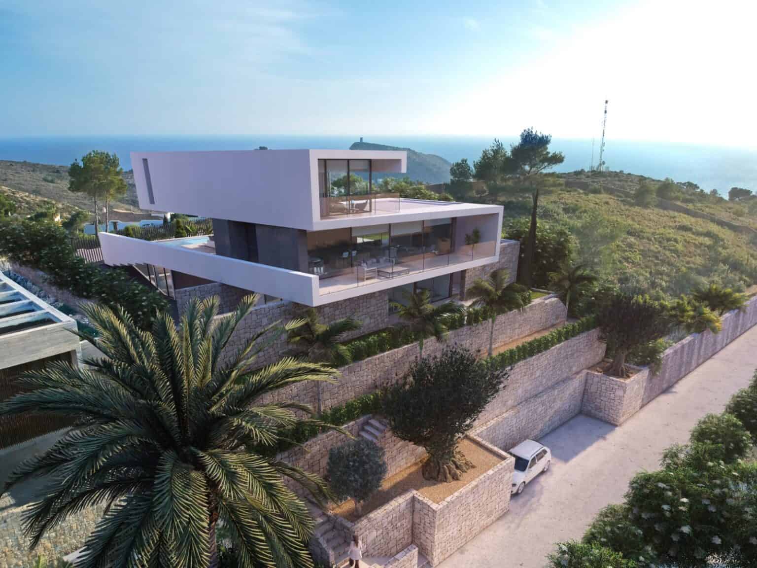 This impressive modern high-tech luxury property is situated in the well-known and sought-after residential area of El Portet in Moraira and boasts, En raison de son emplacement enviable, panoramic views over the Mediterranean Sea, the Peñón de Ifach and the landscape. La belle vieille ville de Moraira, the Port and its paradisiacal sandy beaches are just 5 À quelques minutes.