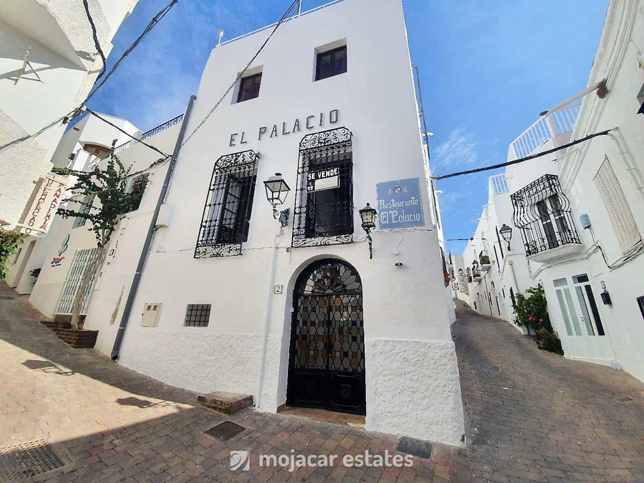 Commercieel onroerend goed / Restaurant in een prachtig dorpsgebouw aan 3 Vloeren omvatten een restaurant & professional kitchen, storerooms and an apartment plus a large roof terrace, for sale in the heart of Mojacar village with sea and mountain views.