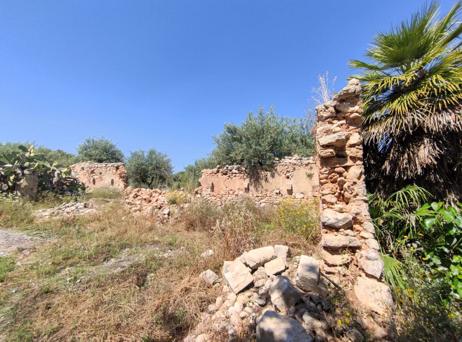 The estate extends over 35,000 M2 (3.5 hectare) of flat land, enriched by typical Mediterranean vegetation: centuries-old olive trees, almond trees and carob trees, in an agricultural context of great landscape value.