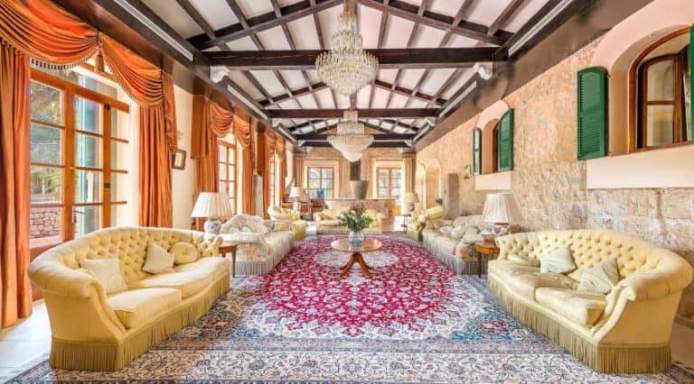 The main house area sits on approx. 4300 m² in total which also includes a number of adjacent buildings. Aanvullend, there are 400 m² of open terraces and a typical Mallorcan courtyard. The Country Estate provides an IMPRESSIVE 84 slaapkamers, waarvan 70 have en-suite bathrooms and 10 have en-suite showers and Jacuzzi baths. Additional features include a pool (12 X 6 M), a gym, an illuminated tennis court, a football field, a professional kitchen, an outdoor kitchen, two passenger lifts, a goods lift, an atelier, A 24 X 15 m events pavilion equipped and with air-conditioning, a security house and a parking for 20 cars. This extraordinary property offers a wonderful park of 36.000 m² with lawn and many trees including orange, lemon, almond and olive trees as well as carobs. On parts of the land it is permitted to hunt. This Country Estate is situated only a couple of minutes away from a golf course. The city of Palma can be reached in 10 notulen, the airport in 15 minutes by car.