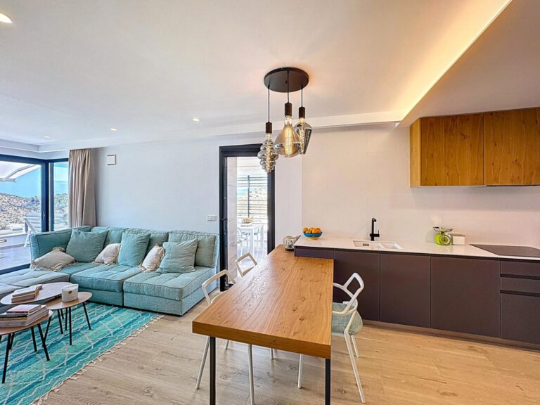 Stunning contemporary penthouse with panoramic views in Montecala Gardens – Cumbre del Sol We present this spectacular contemporary penthouse, located in the exclusive development of apartments Montecala Gardens, within the prestigious urbanisation Cumbre del Sol, between Jávea and Moraira, in the municipality of Benitachell. The property offers a total constructed area of 165 M², distributed in such a way that each space makes the most of the natural light and the incredible views. Het heeft 93 M² of interior space, a large 47 M² terras, which includes a pleasant covered area with a 13 M² Pergola, perfect for enjoying moments of relaxation in the open air, En 25 M² of communal areas. The penthouse has two double bedrooms with fitted wardrobes, Twee volledige badkamers, one of which is en-suite to the master bedroom, providing extra privacy and comfort. The living area stands out for its spacious living-dining room with integrated open-plan kitchen, creating a modern, functional and very bright space. It also has a separate laundry room, adding practicality to the property. One of the main attractions of this property is its stunning panoramic views: from the terrace you can enjoy a unique perspective that encompasses the Moraira valley, the majestic Sierra de Bernia with Calpe in the background, En, of course, the sparkling blue of the Mediterranean Sea. In terms of quality and equipment, this penthouse is equipped with underfloor heating, ducted air conditioning throughout the property, lift in the building and top brand finishes, guaranteeing a high level of comfort and design. This is a unique opportunity for those looking for an exclusive property in a privileged natural environment with views that will simply take your breath away. Would you like to receive more information or arrange a viewing? Please do not hesitate to contact us today. We will be delighted to advise you and accompany you throughout the purchase process. Montecala Gardens: A Modern Complex in the Heart of Cumbre del Sol Montecala Gardens is an exclusive modern-style apartment complex located within the prestigious Pueblo Montecala development, located in the Palmeras residential area of the Cumbre del Sol residential development, in Benitachell (Alicante). Unique Design and Setting Most of the flats in Pueblo Montecala are south-facing, offering excellent luminosity. In aanvulling, the complex borders the Portet de Moraira special protection area and the Llebeig cove, a natural environment that combines tranquillity and beauty. Exclusive Communal Areas Montecala Gardens has a wide variety of communal areas designed for enjoyment and relaxation: Lagoon-style swimming pool, ideal for sunny days.Smaller pool, perfect for year-round use.Spacious solariums and terraces to enjoy the good weather.Social club and gardens for socialising or relaxing.Proximity to Key Services Pueblo Montecala’s strategic location puts you close to a wide range of amenities and places of interest: 700 meter: Access to the picturesque Llebeig cove.From 2 naar 3 km:Morach beach and Los Tiestos cove .Adelfas shopping centre with Pepe La Sal supermarket, hairdresser, maintenance and rental services agency, cafeteria, La Cumbre restaurant and pharmacy.From 4 naar 5 km:Mercadona supermarket .The prestigious Lady Elisabeth International School.Equestrian and sports centre with paddle and tennis courts and bar.From 6 naar 7 km:Mas y Mas supermarket.The town centre and the beaches of Moraira and El Portet.13 km: The famous Arenal beach in Javea.The Perfect Home on the Costa Blanca Montecala Gardens is the ideal place for those looking for a modern lifestyle, surrounded by nature and with all amenities at hand. Don’t miss this opportunity! Contact us today and discover all that Montecala Gardens has to offer.