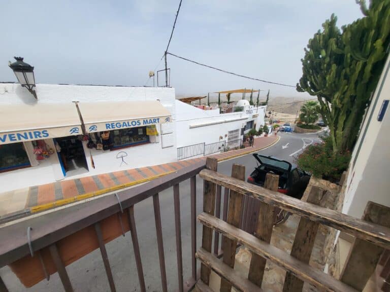 Located in the heart of Mojacar Pueblo amidst bars, restaurants and shops this interesting property has 100m2 inside space and a further 100m2 roof terrace, previously two apartments but more recently converted into a bar. It is currently being used as living accommodation.