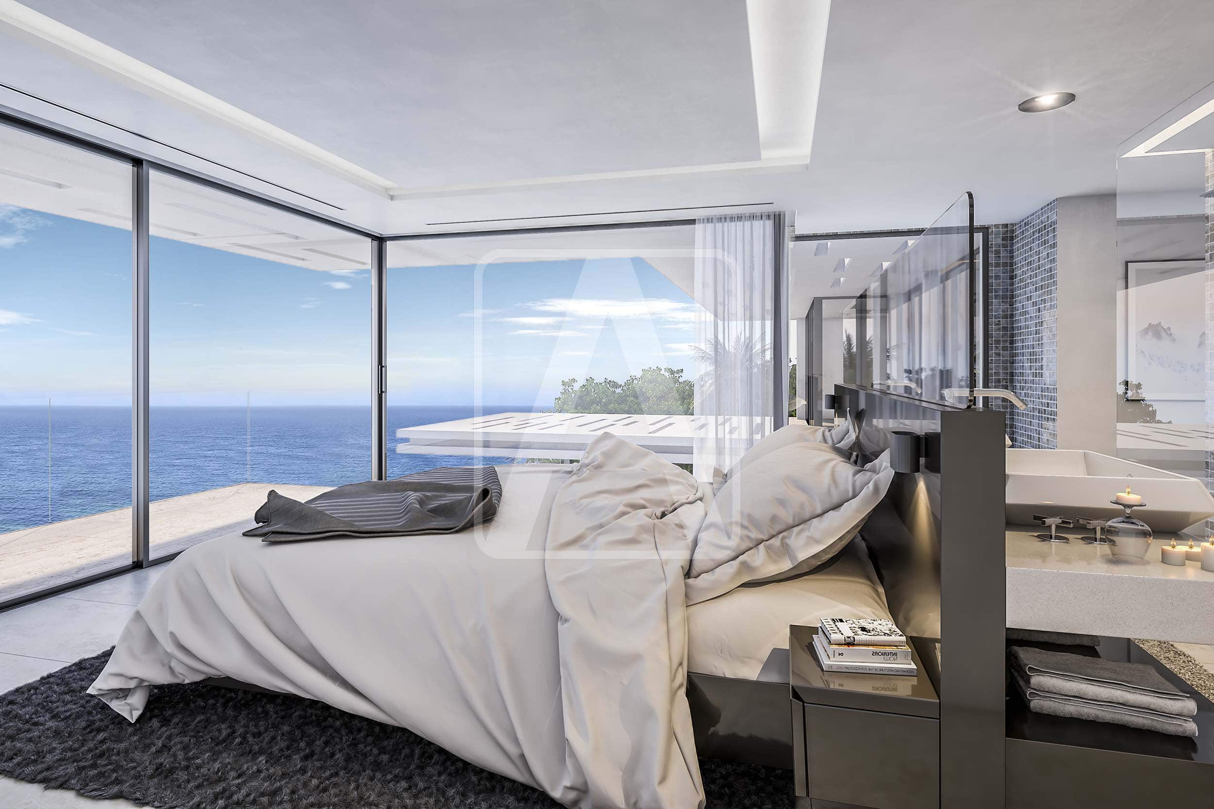 Luxury villa for sale in Jávea, situated in an exclusive enclave, zojuist 1,5 Km from the sea and from the Port of Jávea (and its Yacht Club), 3 Km from the beautiful Arenal Beach and 5 Km from the urban centre of Jávea.. This fantastic villa is situated on a plot of 1.370 m2 and has a constructed area of 446 M2. It is a large luxury villa, high quality and original design, with 4 slaapkamers, 6 badkamers, living room, kitchen, porches, terrassen, garage, spa, jacuzzi, indoor heated pool… All components of this villa are very spacious. It also has central air conditioning, underfloor heating, home automation system and the highest quality materials (Porcelanosa Premium). The project also features a spectacular outdoor infinity pool of 14×6 meter. The luminosity of its open spaces confers an additional property to this extent. The sea views and excellent location not far from Jávea and Moraira are other great advantages. The architect, with great creative talent, has designed this attractive design. We are probably facing one of the most exclusive projects on the Costa Blanca.