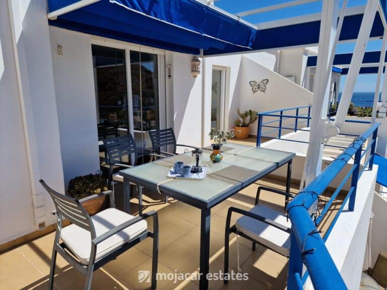 Fantastic top floor apartment for 4 people with amazing sea views located in the South end of Mojácar in residential complex with swimming pool and lift approximately 400 meters to beach and all amenities.