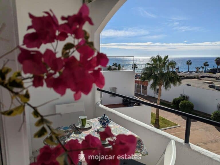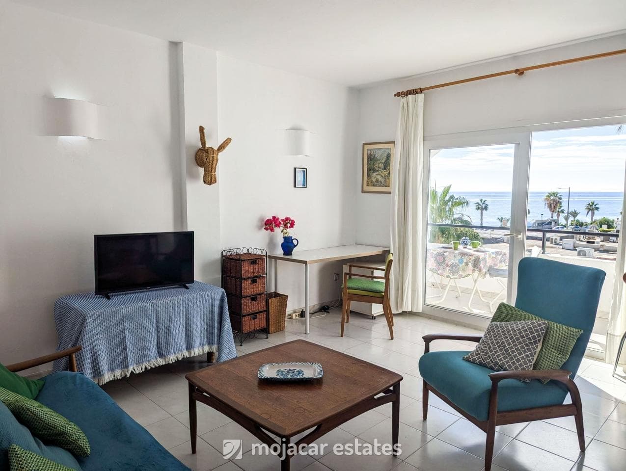 First floor apartment for 2 people with sea views in residential complex located in sea frontline position in the very well known area of Las Ventanicas in the South end of Mojacar Playa.