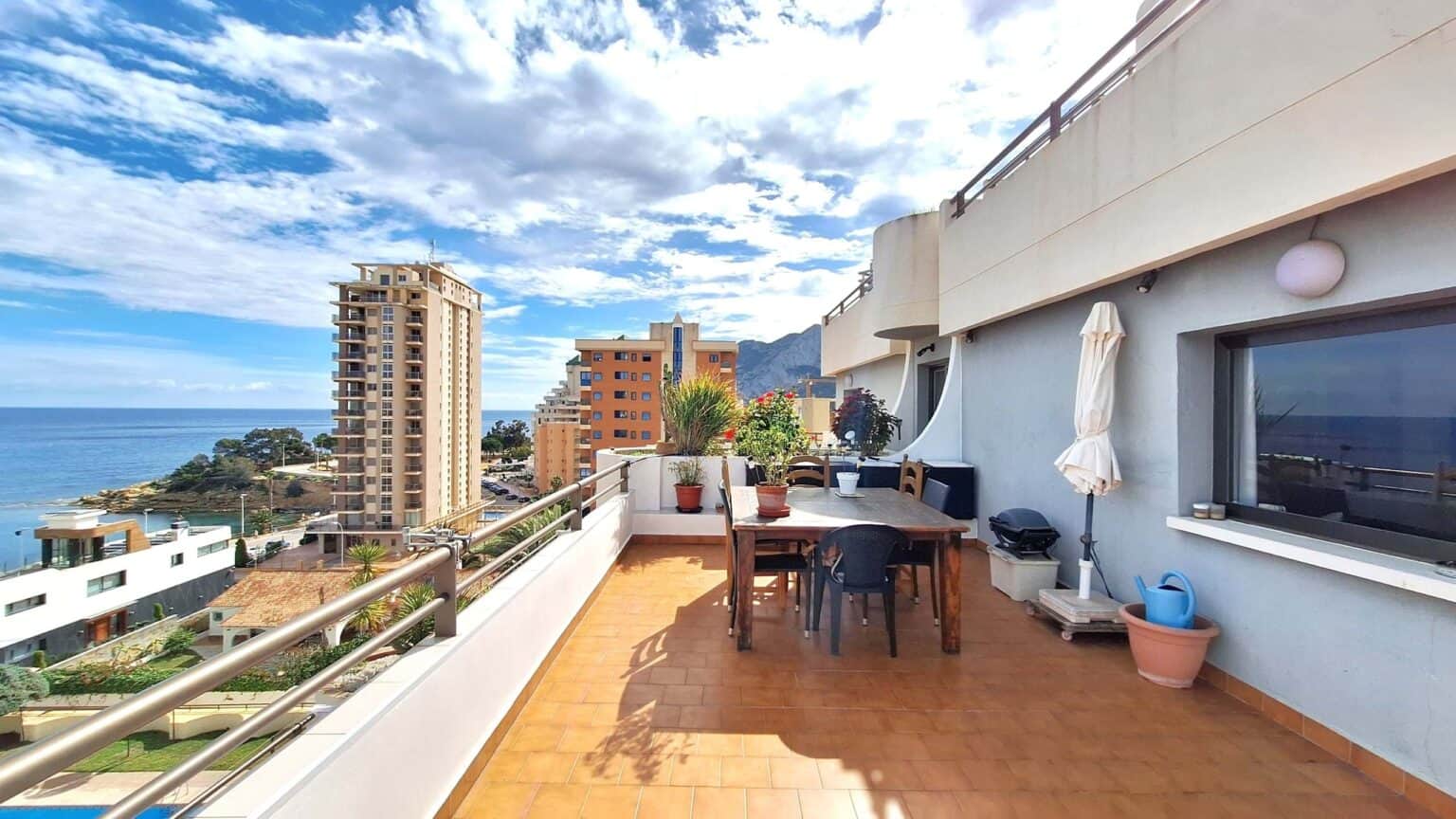 This apartment offers a total living space of 100m2. Divided into a spacious 80m² living area and a generous 20m² balcony, the apartment offers both comfort and style. Upon entering, you’ll find a bright living and dining room to the right, where you can relax and enjoy the panoramic sea views. Step out onto the large balcony, ideal for al fresco dining while taking in the breathtaking vistas of the Mediterranean Sea and the iconic Penyal de Ifach mountain.