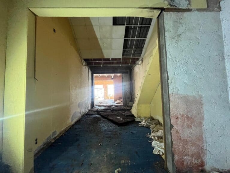 The property includes a large storefront, double glazing, high ceilings, and a subterranean water cistern. A unique opportunity in a highly visible and busy location.