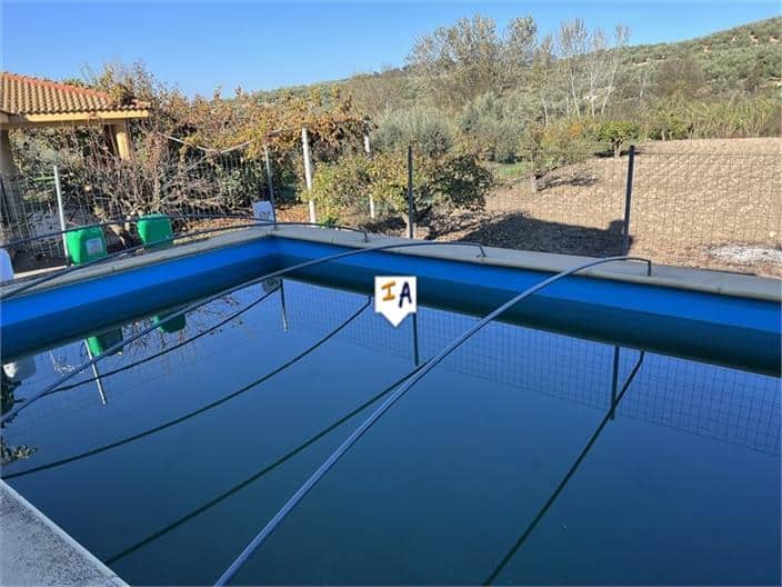 This 2 bedroom Cortijo with a 1,896m2 level plot is situated in Castillo de Locubin in the south of Jaen province in Andalucia Spain. Located on a quiet well maintained track this countryside property with a large garage / workshop, swimming pool and level plot is ready to renovate. The property has electricity connected and a water deposit, an off road parking area leads to your extensive grounds, a storage room that includes a toilet. There is also another storage room leading to a patio area with a barbecue and summer kitchen space that overlooks the good size swimming pool. You enter the main property from the patio into a lounge off which is a double bedroom on the right and a twin bedroom to the left that leads into the kitchen diner,