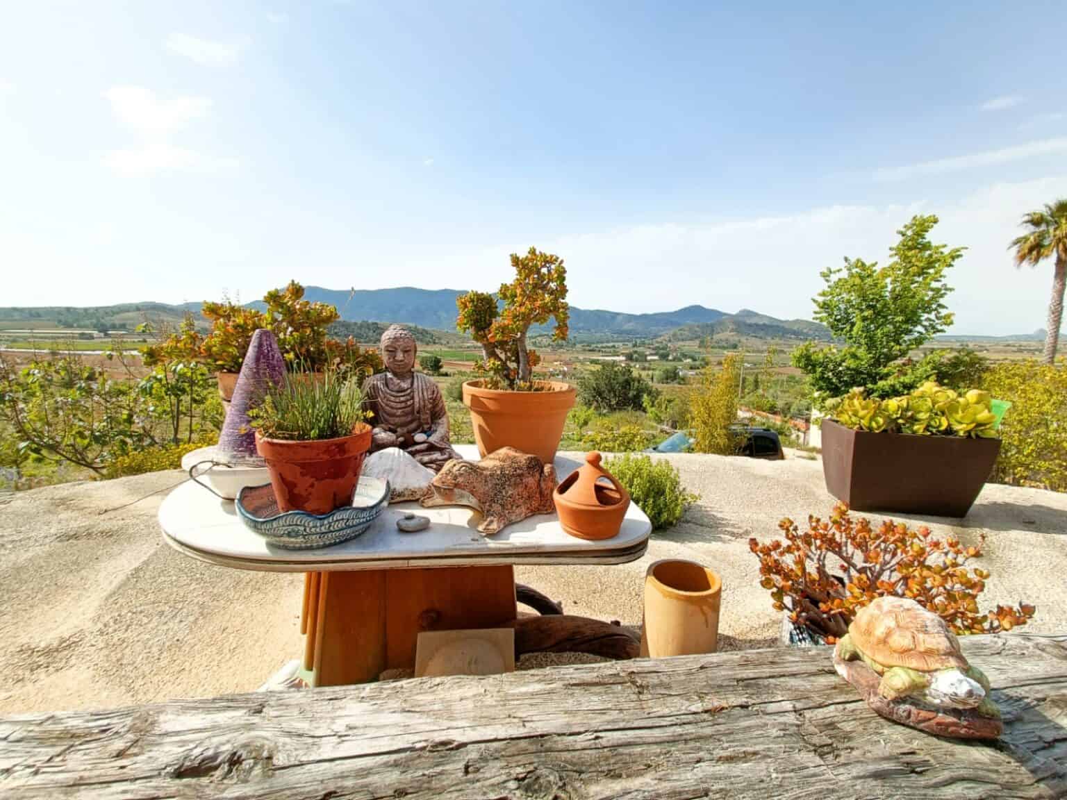 . Located on top of the mountain, this property offers breathtaking 360º panoramic views of the valley, set in a natural environment that will captivate you from the very first moment. Just a few minutes’ drive from the charming village of Hondón de las Nieves, with asphalted access, this estate blends privacy, beauty, and tradition.