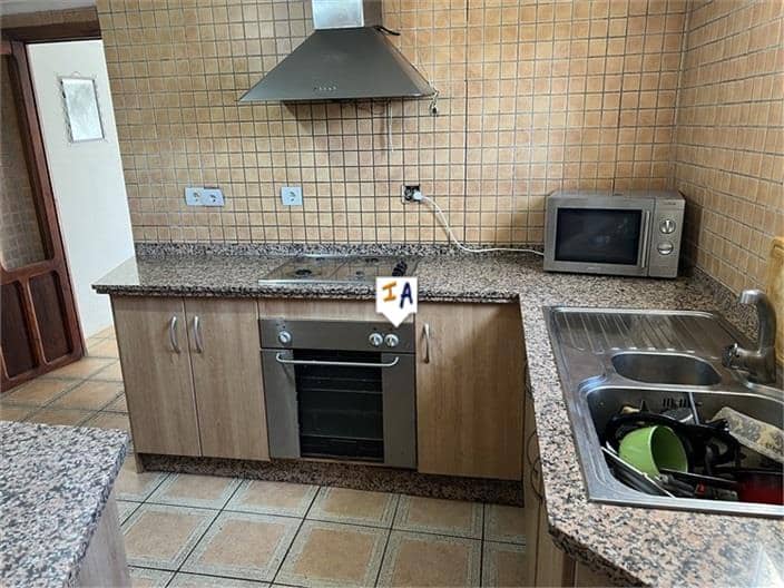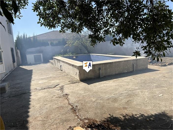 This 297m2 build, detached 3 bedroom Cortijo is situated in San Jose de la Rabita, close to the historical city of Alcala la Real in the south of Jaen province in Andalucia, Spain. Located off a wide country lane the property with a generous 497m2 plot has off road parking, a private garage, a walled patio area and another open patio space with mature trees. You enter the substantial property into a large reception room and a fitted kitchen to the left off which is a laundry area and a ground floor tiled bathroom with a corner bath. To the right of the reception room is a good size room with an open fireplace and has a doorway with steps leading up a large unconverted storage space. The reception area leads directly into a large double length lounge with a wood burner and a staircase that leads first to the spacious rear private courtyard, where you have a swimming pool and garden areas. The staircase continues to the first floor landing off which is a storage room and a passageway leading to 2 double bedrooms. This countryside property with a near 500m2 plot, has town water but the electricity will need to be reconnected, then it can be updated with some renovation work, it is price to sell at 52,000 euros.