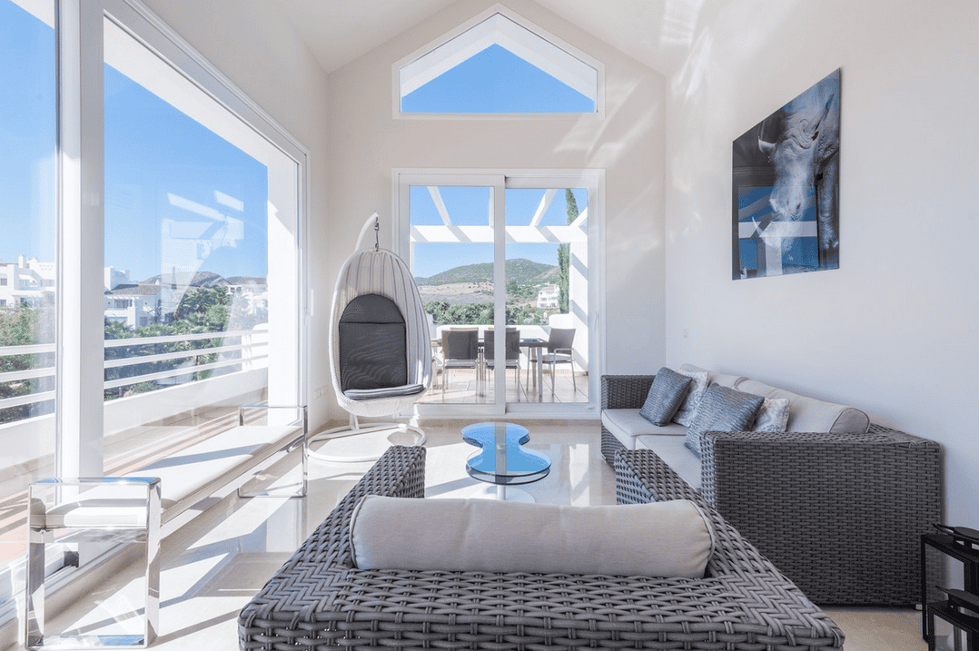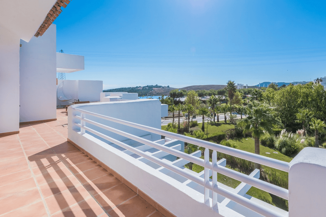 Stunning 2 bedroom penthouse apartment located within a completely unique development in Casares. This almost brand new apartment has been maintained and furnished to extremely high standards, and is set within what can only be described as one of the most unique apartment communities you will ever visit! The property overlooks the beautiful community gardens and one of the two large freeform swimming pools, with partial sea and partial views to the onsite Lagoon. The apartment offers an almost wrap-around terrace of just under 80m2, offering all-day sunshine and complete privacy. Inside, the apartment comprises; a large open plan living and dining area with an amazing vaulted ceiling, overlooked by a top-quality fully fitted kitchen, 2 beautiful bedroom suites, and 2 luxury bathrooms. The property is being offered with a private underground car parking space and storage room and is potentially sold fully furnished to a very high standard.