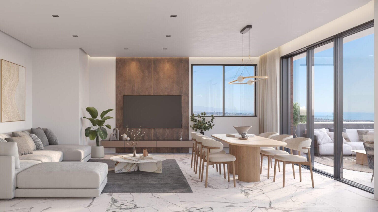 Imagine waking up every day with spectacular views of the Mediterranean Sea from the comfort of your spacious home. The spacious and elegant terraces are designed to enjoy the sea breeze and unparalleled sunrises. Whether for outdoor dining or relaxing with a book, this is the perfect space to live the lifestyle you’ve always dreamed of.