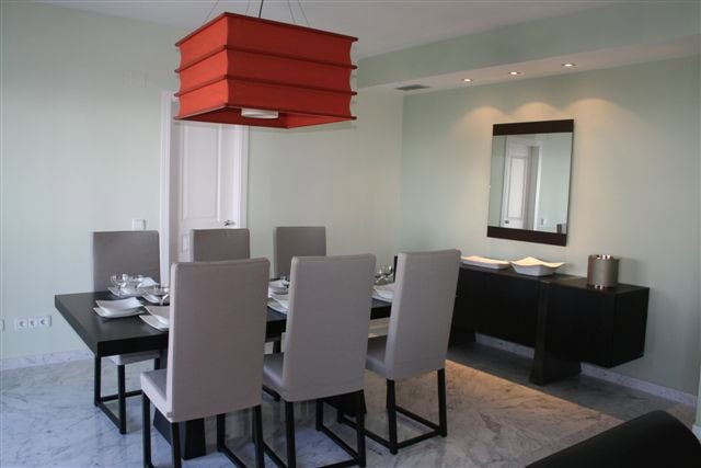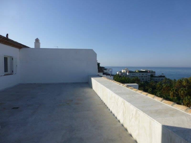 Luxurious 3 bedroom duplex penthouse in an exclusive complex in Puerto Banus with large common areas of more than 30,000 meters. And, with 2 bars open during the summer season. This resort is located on the beach, very close to the best shops, restaurants and entertainment areas. This apartment has a large living room overlooking one of the terraces facing west overlooking the sea, pool and mountain views. The upper floor is accessed by a wooden staircase to the master bedroom with en suite bathroom and a large terrace overlooking the sea. Features: Air conditioning, 24 hour security, 3 swimming pools, 2 restaurants, garage.