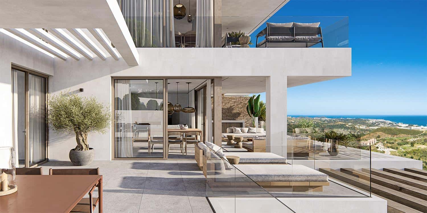 With a privileged location in La Cala de Mijas, we already knew before starting the design that we would have to create something spectacular. A modern and contemporary design had to blend with our Danish (or Scandinavian) roots and focus on “hygge” (read: cozy) creating comfortable living spaces that blend indoor and outdoor living and provide maximum exposure to the incredible views. over the Mediterranean.. . The result is a select boutique development of just 16 2 and 3-bedroom residences, created from a concept of quality, functionality, Scandinavian design and our passion for developing unique lifestyle properties.. . BOUTIQUE HOUSES, DISCOVER THE STYLE. . A boutique urbanization of 16 apartments and penthouses with 2 and 3 bedrooms, with a distinguished style and finishes, facing the golf valley of La Cala with spectacular 180 degree views towards the sea.. . Within this gated community, you can enjoy complete peace, comfort, and relaxation in an environment close to everything you could want.. . We recognize that each person has different tastes and needs for their home, which is why we offer the possibility of choosing the color of the floor and covering, as well as other material accessories, stylistic details, configurations and your choice of amenities.. . MAXIMUM PRIVACY AND VIEWS…. . The apartments have a contemporary design and are built to the highest quality standards. Almost all units have a private pool or Jacuzzi. Penthouses and ground floor apartments also enjoy larger terraces. In the basement of the building there is a parking space and a storage room for each unit.. . From the home’s flowing interior spaces to the expansive terraces, spectacular, undisturbed views are a constant companion.. . Whether in your stylish open-plan living room, comfortable bedroom, cozy outdoor living space or by the panoramic private pool on your rooftop terrace, we have a harmonious blend of modern comfort and Mediterranean charm, the very embodiment of what a 21st century Costa del Sol property should be.. . WELLNESS LET YOUR ENERGY FLOW:. . A healthy mind in a healthy body!. To maintain your fitness routine, Alma has a space where you can carry out various cardiovascular or muscle-building activities and continue with your daily physical training habits.. The room is equipped with state-of-the-art machines, complete weight-training equipment, and everything you need to tone your body or de-stress.. . Adjacent to the fitness room is a continuous pool fitness system. (endeless pool) can easily be switched to wading, running, low-impact resistance exercises, or simply relax in the sculpted spa seats. A hydrotherapy retreat to help rejuvenate the body after a workout.. . The residential also has an outdoor infinity pool available, located next to a well-equipped solarium with comfortable sun loungers, pergolas with relaxing seating areas and a kitchenette with barbecue facilities.. . Calahonda, Elviria, Fuengirola, Mijas and Marbella are all within a radius of approximately 15 minutes, with Malaga and its international airport also close by, so you can enjoy all the practical and leisure services on the Costa del Sol from its peaceful and private on a south facing viewpoint