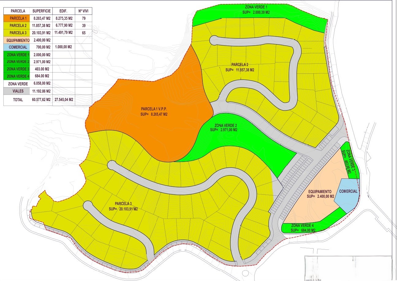 4.- important: The minimum plot area is not defined. The developer has complete flexibility to distribute the plot area according to their needs provided that it does not exceed the maximums established in the Urban Planning File (121 homes and 18,269.68 sq.m. Free housing).