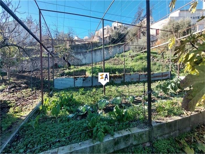 This 4 bedroom townhouse with a patio and big garden on a generous town plot of 845m2 is situated in Castil de Campos close to the large historical town of Priego de Cordoba in Andalucia, Spain. With parking right outside you enter the property from a raised pavement into a lounge that leads first to another seating area with an open fireplace and then to a hallway that leads to a ground floor double bedroom. Steps off the hallway take you to the spacious first floor landing off which is a large storage room to the left and 2 further rooms on the right. Back on the ground floor, off the seating area is the fully tiled fitted kitchen from where a corridor leads first to a shower room then out into a partly covered patio space with a storage room. A door from the patio leads into your generous size garden areas with vegetable patches, mature trees and far-reaching views over the roof tops to the mountains beyond. On the market for €52.000 this property with a great size garden is ready to move into whilst renovating the first floor rooms.