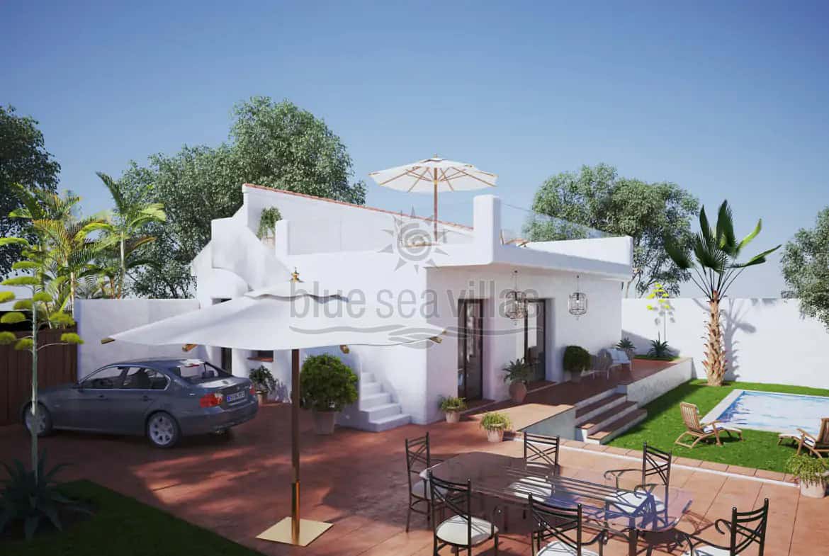 Welcome to this charming off plan detached villa with a private swimming pool, where modern elegance meets thoughtful design. Priced at 276,000€, this new build offers a comfortable retreat with ample amenities and a prime location approximately 6km from Albox village centre. With a property size of 110 sqm and a spacious land area of 400 sqm, this home provides an ideal balance of space and functionality. Boasting three bedrooms and two bathrooms, it’s perfectly suited for those seeking a cozy yet accommodating living space. Crafted with meticulous attention to detail, the ground floor features an open plan kitchen seamlessly flowing into a welcoming living room. A fully fitted bathroom, laundry-storage room, and three well-appointed bedrooms, including an ensuite with a dressing room, complete the ground level. Outside, a garden and swimming pool await, providing a tranquil outdoor sanctuary for relaxation and entertainment. Ascending the side staircase leads to the upper floor, a versatile space serving as both a solarium and a balcony. Here, the possibilities are endless – whether you envision a cozy snug for quiet evenings or a gym with covered and open-air options, this area offers limitless potential for customization. Designed for ultimate convenience, this property includes a carport and a 3 x 5 meter swimming pool, perfect for enjoying the Mediterranean lifestyle. Plus, the price encompasses fully landscaped gardens, ensuring a picturesque setting from day one. With construction starting soon, seize the opportunity to make this dream home yours. Don’t miss out – inquire today and embark on a journey to luxurious living.