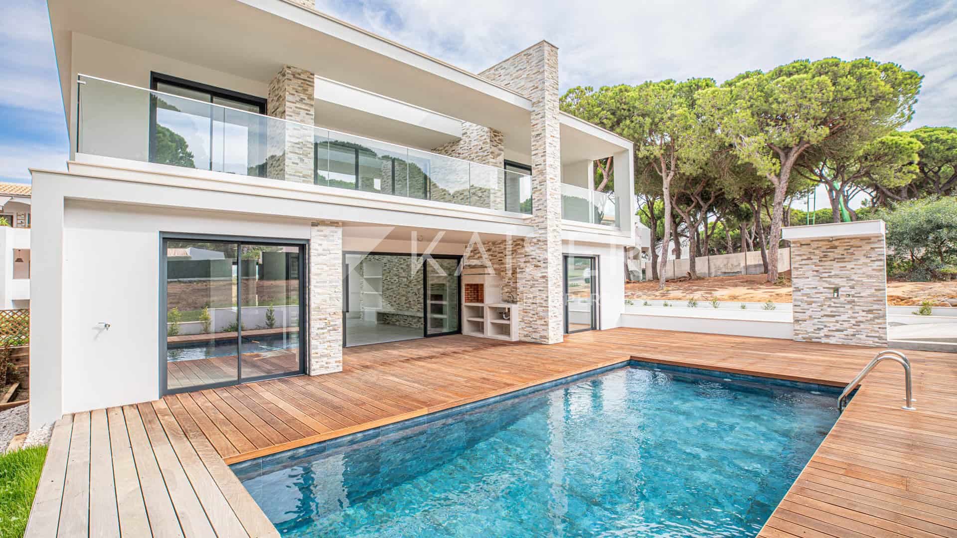 Home StagingThis luxurious 3-bedroom villa boasts an amazing double-height living room and outdoor space designed for entertainment with its saltwater pool and rooftop terrace. Featuring a large garage with space for up to 3 vehicles, this property is close to all amenities such as Michelin-starred restaurants, golf course, coffee shops, supermarkets, schools and a 15-minute walk to the beach. The property comprises:Basement: garage and technical rooms/area.Ground floor: Hall, open-plan dining and living room areas with fireplace, equipped kitchen, one bedroom with built-in wardrobes and patio windows, en-suite bathroom with bathtub and shower and toilet.First floor: 2 bedrooms with built-in wardrobes and doors leading to a large common terrace, and 2 shower rooms, both en-suite.Rooftop Terrace: spacious area to entertain.The elevated building standards ensure your comfort with a range of modern features, including air conditioning in all rooms, heated floors in every suite, a fireplace with a heat recovery system, centralized shutter lock control, solar panels, a 300-litre capacity water heater with a heat pump, electric vehicle charger, and automatic pH pool regulator, which can be managed via mobile app.