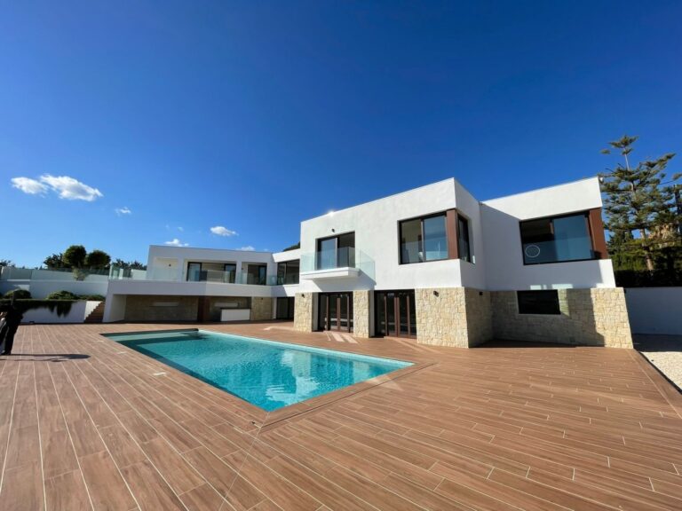 Luxury villa for sale in the exclusive area of Altea. The villa is made of high quality materials, the house has 4 bedrooms, an office, 5 bathrooms, two kitchens, two living rooms, several dressing rooms, storage rooms and a wine storage room. The upper floor has a spacious terrace and a balcony from the master bedroom. The villa is sold unfurnished, but at your request, you will be provided with a company that will accompany the furnishing of your house for a fee. Around the house there is a swimming pool, a huge terrace and a summer kitchen. Land area 3000 m2. This is a designer garden with a variety of trees and flowering plants. The views from the house open to the mountains and the sea, in particular to the Sierra Elada nature reserve and the bay with incredible blue water. All neighbors in the area are Europeans. Nearby access Altea and Albir. Alicante is forty minutes away. The house is under video surveillance and alarm.~