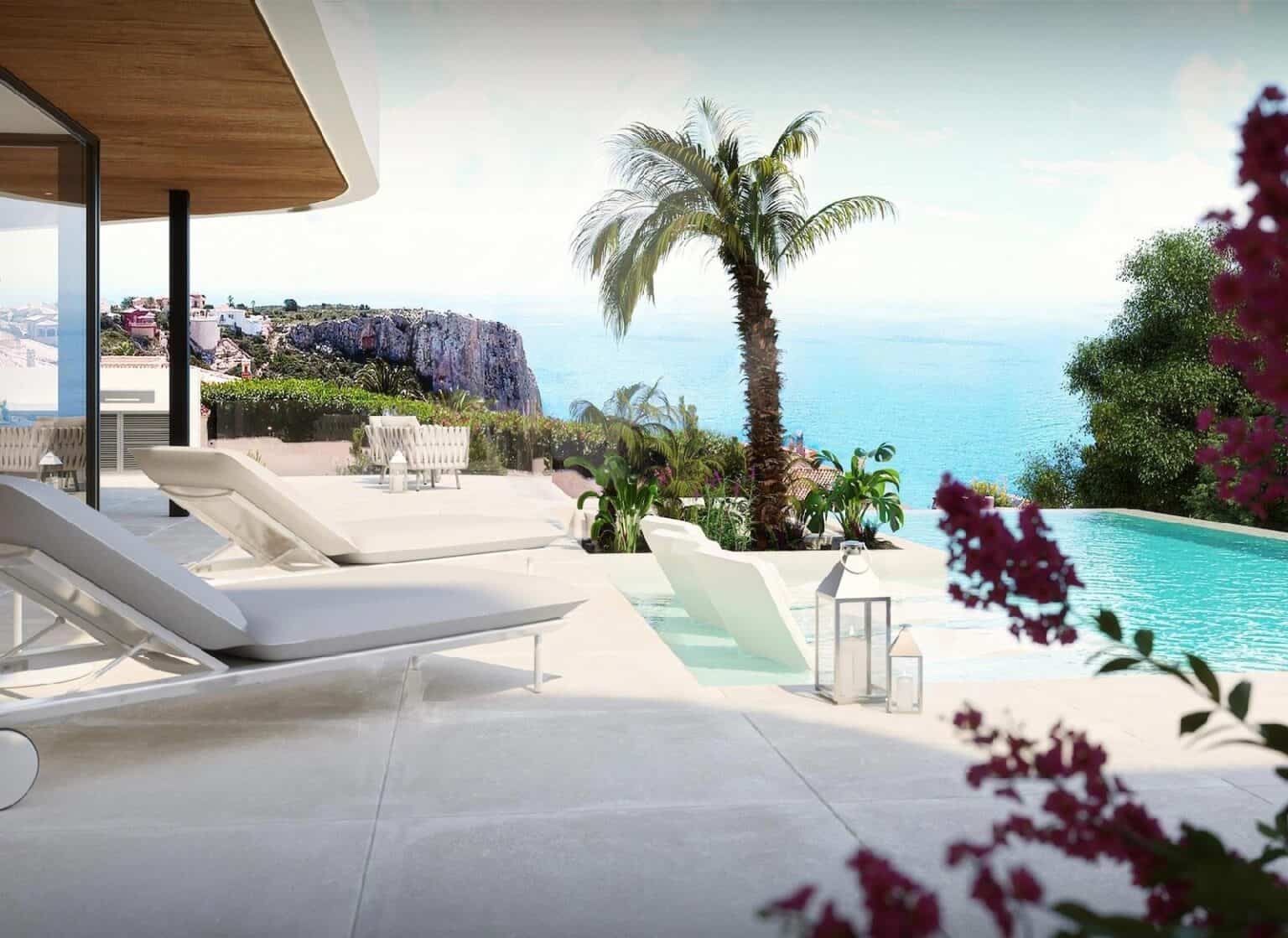 Cumbre del Sol is located on the top of a mountain next to Moraira. The views are truly breathtaking, and on clear days you can even see Ibiza. Moraira is a typical Spanish village with charm located 80 km north of Alicante. In the centre you will find many good restaurants, bars and cafés. Around the marina you will find a chill-out atmosphere, as well as in the southern part of the village in the direction of Calpe. Moraira offers dazzling nature and has many restrictions when it comes to building. Politicians will leave Moraira as beautiful as it is today. Around Moraira you will find many blue flag beaches.