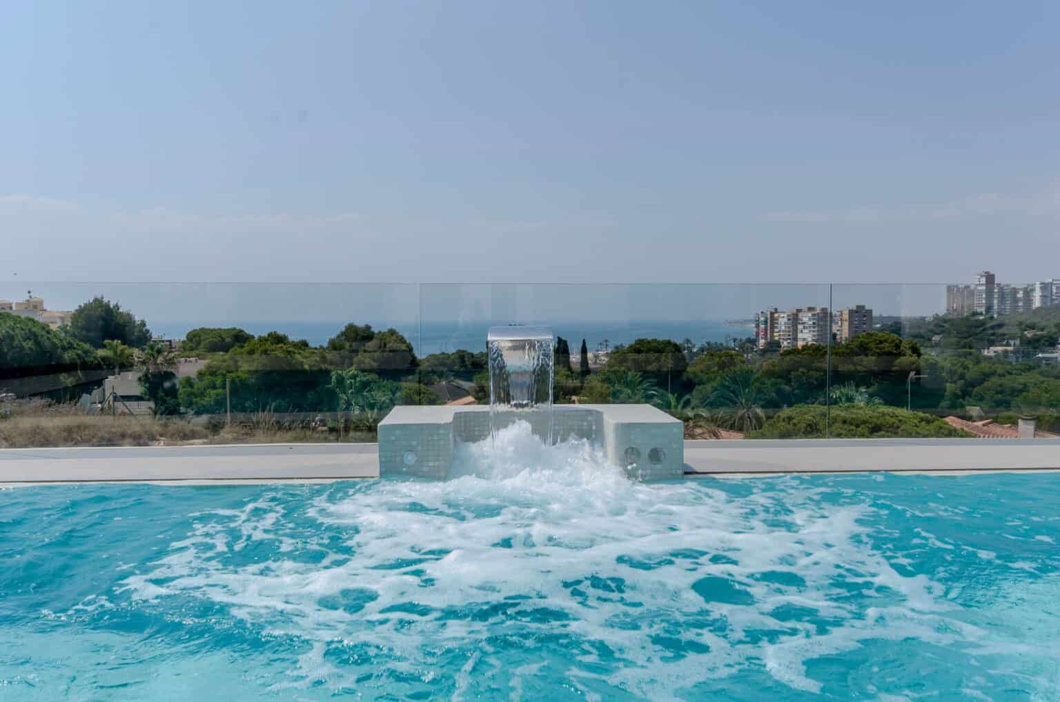 On the last floor, we reach the huge roof terrace of 68 sqm with plenty of space for the terrace furniture, jacuzzi and sunbeds as well as wonderful views over the Mediterranean coast and the surroundings.