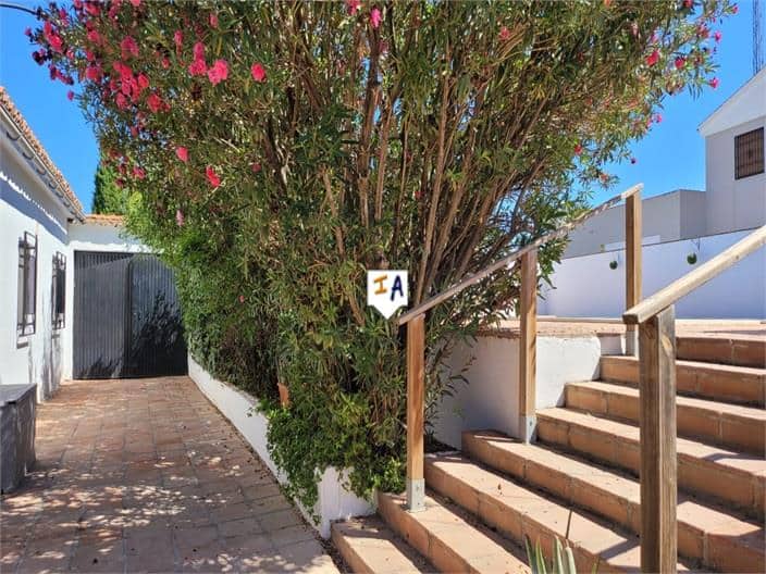 This fantastic 4 bedroom, easy living, single storey, Chalet style Villa property sits just a short five minute drive from the centre of historical Loja in the province of Granada in Andalucia, Spain. The property has a private gated entrance which opens to allow off road parking and access to the private garage space. Once inside the patio area wraps around the property with steps leading to a wonderful pool and entertaining space. The Villa opens in to a central hallway that leads to three good size bedrooms and a family bathroom to the front of the property and on to a central lounge diner which continues to a fourth bedroom with ensuite and a country style kitchen with plenty of storage space. The kitchen opens to a private courtyard ideal for alfresco dining and also gives access in to the garage / workshop and a separate storage room. This is a great property in a good location and must be seen to be appreciated.