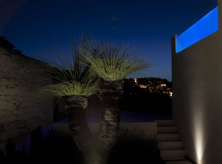 The white stone, typical native stone of the place, dominates the entire property, from the dry stone walls that delimit the area and the three hectares of land of which this luxurious residence boasts.