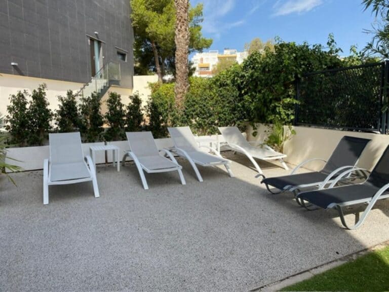 Semi-detached corner house for sale. The house has two floors. On the ground floor is a living area with an open kitchen, 2 bedrooms, 1 bathroom and a storage area. The top floor features a large bedroom with partial sea views, a balcony, and an additional bathroom. The house is fully furnished and includes a large garden area and parking space. Located in a gated community with a communal pool, all amenities are within walking distance, including restaurants, bars, and a supermarket. Price: 339.900€ Just reduced!!!