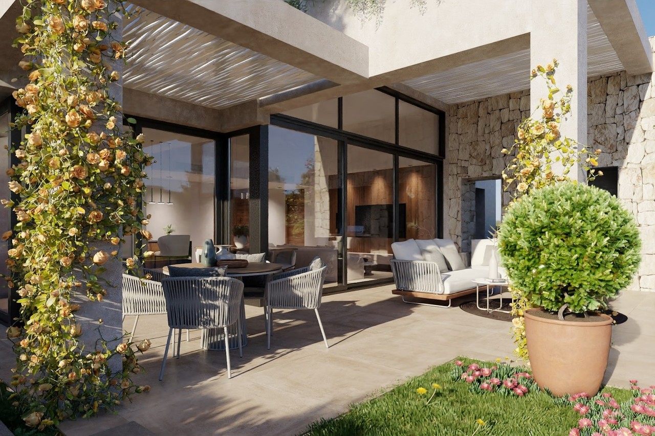 This contemporary three bedroom, two bathroom detached villa seamlessly combines luxury, comfort, and Mediterranean charm, all on a single level for effortless living. The expansive ground floor layout is meticulously designed to maximize natural light and enhance open-plan living. The master bedroom enjoys direct access to a private terrace, creating a secluded retreat for ultimate relaxation.