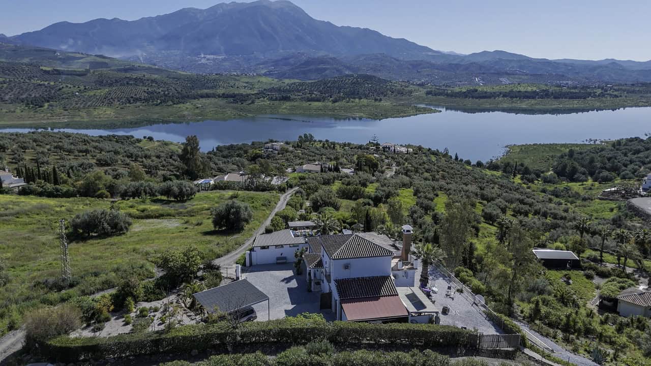Villa Mayordomo holds a prime, lake view position with extensive view over Lake Vinuela and Mount Maroma. The plot is approximately 5,000m2 with automatic gates to the large parking area and car port. To the front of the plot is a swimming pool with roman steps, a separate jacuzzi and decking around it to sit and enjoy the fantastic lake views. The rest of the plot is made up of various seating areas, well established trees, plants and Spanish succulants. The 2 story villa consists of 4 bedrooms with fitted wardrobes, 3 bathrooms, a lounge/diner with woodburner and patio doors onto an enclosed terrace, fully reformed and modern kitchen with island, breakfast room and a covered terrace with outdoor kitchen and bbq area. The villa has been upgraded in most of the key areas, although any buyer could put their own stamp on the property. Modern, light and stylish the property offers a number of internal seating areas plus a light modern kitchen and all three of the bathrooms have been upgraded. Extras like AC, central heating, solar hot water, many covered terraces, a large car port, electric entrance gates and three other gated entraces for various parts of the large, rustic plot. Take a look and see!