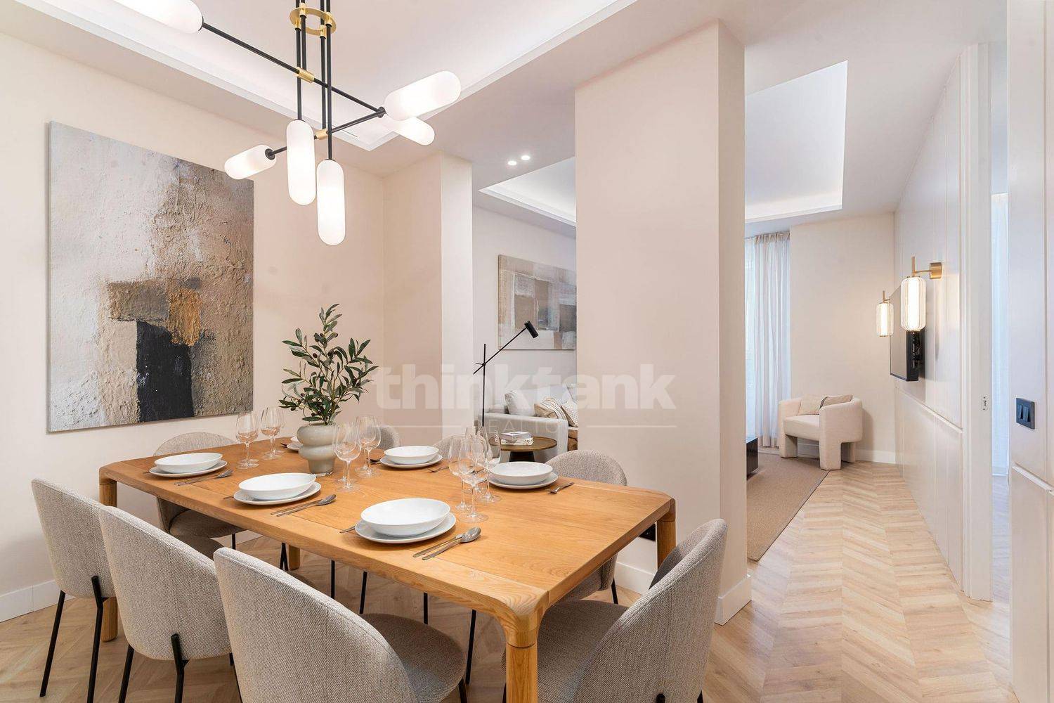The distribution includes three double bedrooms, each with en suite bathroom, for a total of three bathrooms. Dessutom, the apartment offers a large lounge and dining area, ideal for moments of conviviality. The integrated kitchen is equipped with high-end appliances and contemporary design.