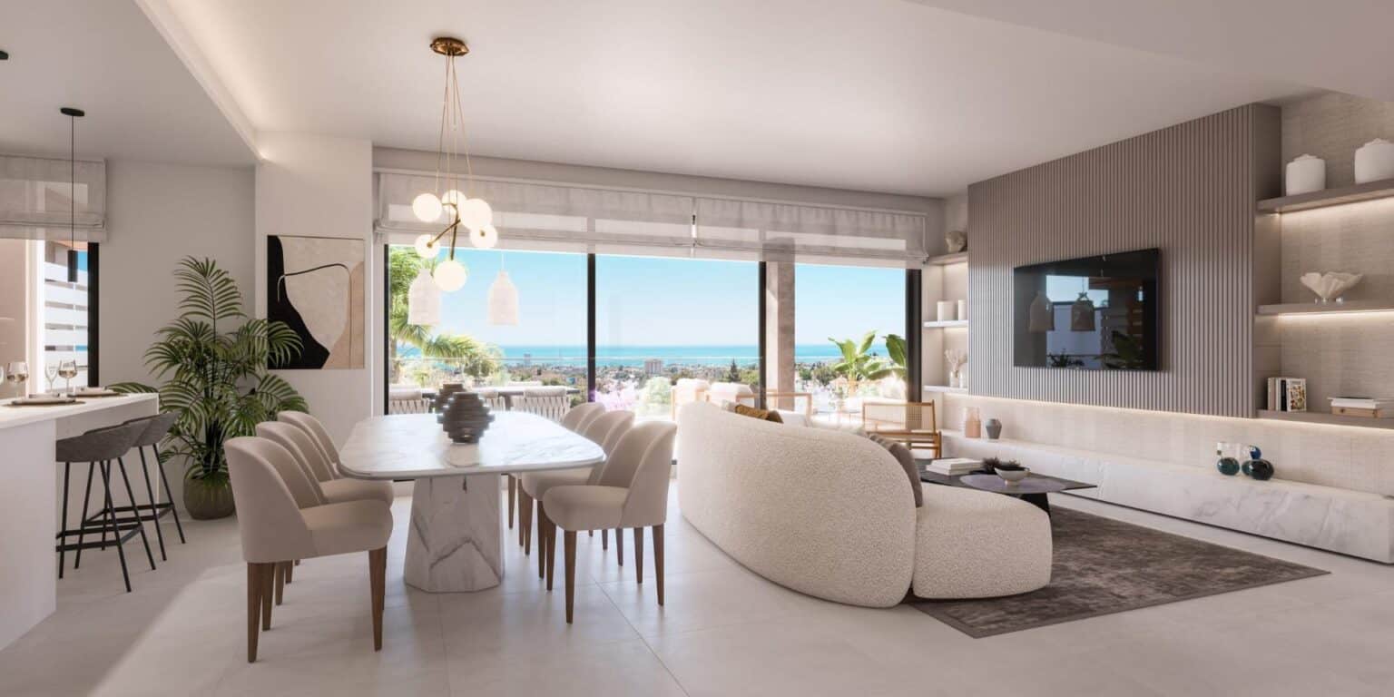 Unik livserfarenhet, milt klimat och närvaro av solen under hela året. The center of Marbella, its promenade, trails, forests, the Costa del Golf, marinas and beaches. EVERYTHING at your fingertips.. . The Costa del Sol has it ALL, in a unique and healthy lifestyle.. . In a residential area immersed in a magnificent natural space with modern and minimalist architectural planning.. . The design, the premium qualities and the taste for small details are non-negotiable premises in this project that act as a distinctive element and make a sustainable, comfortable and safe future investment.. . The project consists of 96 homes distributed in 12 buildings. In this way, we can offer you a wide variety of typologies in a maximum of three heights: ground floor homes with a garden and private pool, first floor with large terraces, and penthouses with a solarium where there is the possibility of installing a mini pool.. . Mer än 20,000 m2 of green spaces that surround each block of flats with Mediterranean plants and trees.. . This residential offers you a place where you will feel comfortable all year round, backed by magnificent leisure and wellness services, excellent qualities and views of the sea so that your life is always surrounded by nature with a markedly healthy lifestyle.. . The bright, open and elegant rooms remind us that the design, the quality of the finishes and the taste for small details are the main characteristics that define the project that has been designed with spaces designed for coexistence.. . Common leisure areas A home, infinite possibilities:. . SPA area, with heated salt pool, bastu, Turkish bath, cold water shower, changing rooms with showers and equipped gym.. . Equipped social room, Coworking area and Pool Bar.. . Leisure is guaranteed thanks to the Social Club, a space where you can socialize and make friends within the residence where each member of the family will find their own way of having fun. Relax, enjoy, exercise, meet, rest, walk, live.. . We offer you the possibility of choosing the finishes for your home from a catalog of options, so that your future home is an extension of your way of seeing and living life.. . You can choose from a variety of coverings, both on walls and on the floor at no added cost.. . And if what you want is a quality extra that adds value to your home, we suggest:. – Installation of a mini pool on the solarium floor of the penthouses.