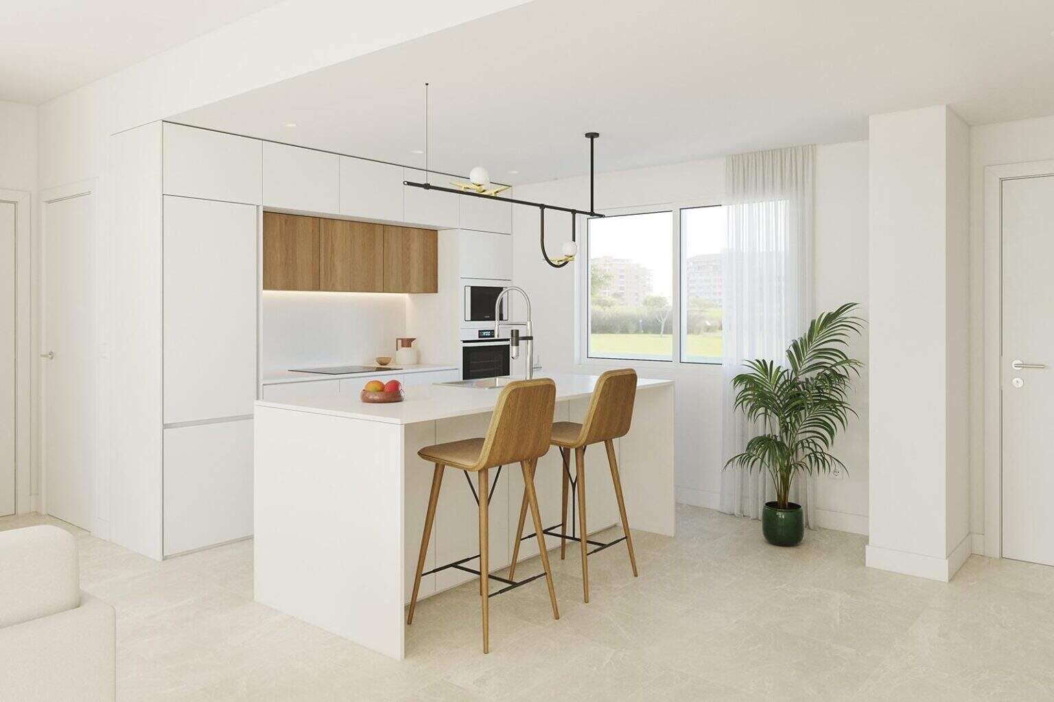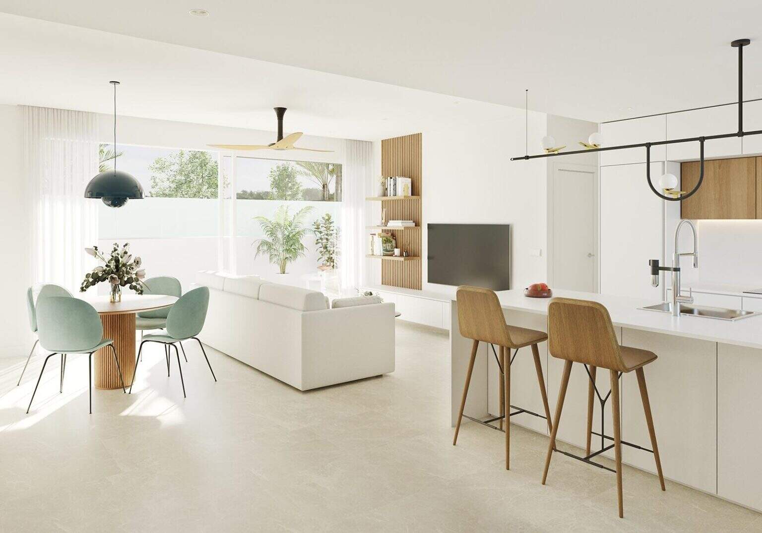 New Build contemporary style semi-detached villas with a pure and elegant design, with a distribution oriented to the Mediterranean light that invades the entire interior of the house. With open day areas in which the kitchen joins the living room, creating a contiguous environment delimited by a central island, an incredible area to enjoy breakfast or a meal every day.